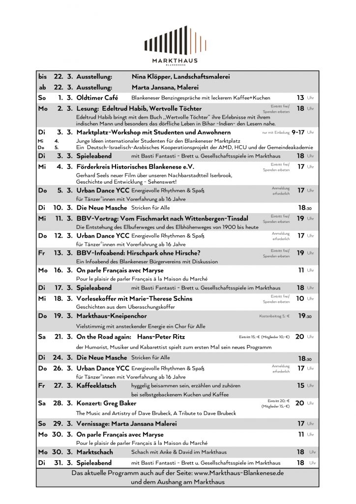 Hier ist unser März Programm.